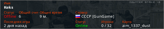 Последний раз был в сети 2 дня назад Игрок с таким ником замечен на 32 серверах