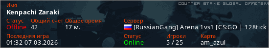 Играет на Counter Strike Global Offensive сервере. Страна: РоссияПервый раз замечен 01:33 06.03.2026