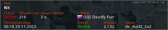 Играет на Counter Strike 1.6 сервере. Страна: РоссияПервый раз замечен 17:04 02.03.2022