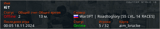 Играет на Counter Strike 1.6 сервере. Страна: РоссияПервый раз замечен 16:47 06.04.2024