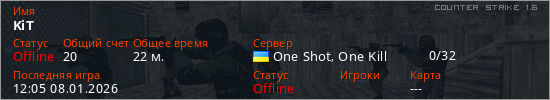 Играет на Counter Strike 1.6 сервере. Страна: УкраинаПервый раз замечен 04:28 06.01.2026