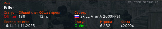 Последний раз был в сети 16:14 11.11.2025 Игрок с таким ником замечен на 52 серверах