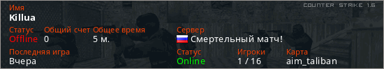 Последний раз был в сети Вчера Игрок с таким ником замечен на 34 серверах