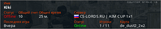 Последний раз был в сети Вчера Игрок с таким ником замечен на 21 сервере