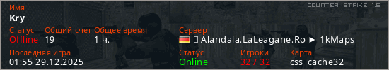 Последний раз был в сети 01:55 29.12.2025 Игрок с таким ником замечен на 4 серверах