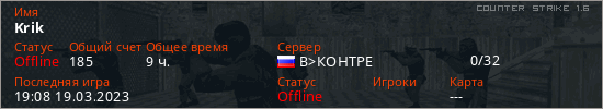 Играет на Counter Strike 1.6 сервере. Страна: РоссияПервый раз замечен 02:58 18.12.2019