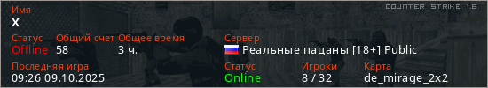 Последний раз был в сети 09:26 09.10.2025 Игрок с таким ником замечен на 47 серверах