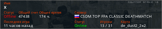 Последний раз был в сети 8 часов назад Игрок с таким ником замечен на 48 серверах