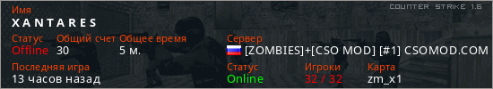 Играет на Counter Strike 1.6 сервере. Страна: РоссияПервый раз замечен 03:22 16.02.2026