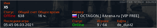 Последний раз был в сети 05:45 06.03.2021 Игрок с таким ником замечен на 15 серверах