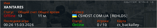 Играет на Counter Strike 1.6 сервере. Страна: УкраинаПервый раз замечен 22:58 14.03.2026