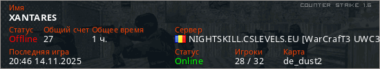 Последний раз был в сети 20:46 14.11.2025 Игрок с таким ником замечен на 51 сервере