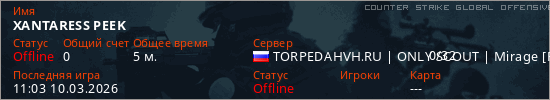 Играет на Counter Strike Global Offensive сервере. Страна: РоссияПервый раз замечен 11:01 10.03.2026