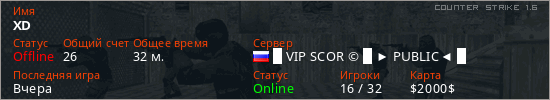 Последний раз был в сети Вчера Игрок с таким ником замечен на 50 серверах