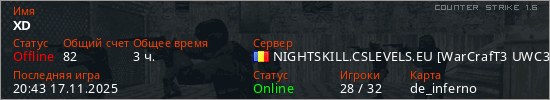 Последний раз был в сети 20:43 17.11.2025 Игрок с таким ником замечен на 53 серверах