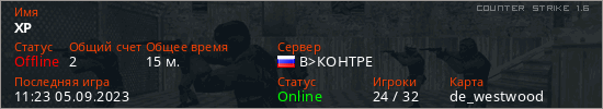 Играет на Counter Strike 1.6 сервере. Страна: РоссияПервый раз замечен 08:39 27.09.2021