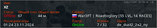 Играет на Counter Strike 1.6 сервере. Страна: РоссияПервый раз замечен 13:53 24.02.2022