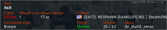 Последний раз был в сети Вчера Игрок с таким ником замечен на 41 сервере