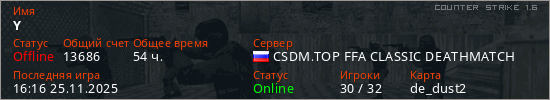 Последний раз был в сети 16:16 25.11.2025 Игрок с таким ником замечен на 35 серверах