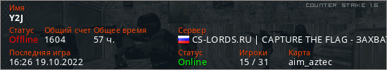 Играет на Counter Strike 1.6 сервере. Страна: РоссияПервый раз замечен 20:21 25.08.2020