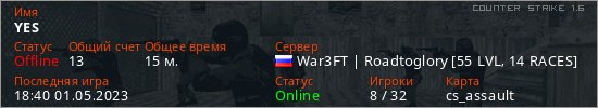 Играет на Counter Strike 1.6 сервере. Страна: РоссияПервый раз замечен 15:55 12.01.2022