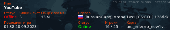 Играет на Counter Strike Global Offensive сервере. Страна: РоссияПервый раз замечен 04:04 22.08.2023