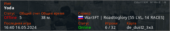 Последний раз был в сети 16:40 16.05.2024 Игрок с таким ником замечен на 15 серверах