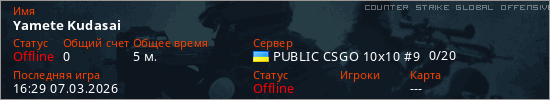 Играет на Counter Strike Global Offensive сервере. Страна: УкраинаПервый раз замечен 16:27 07.03.2026