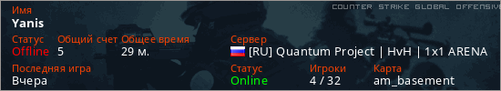 Играет на Counter Strike Global Offensive сервере. Страна: РоссияПервый раз замечен 05:03 22.03.2026
