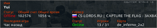 Играет на Counter Strike 1.6 сервере. Страна: РоссияПервый раз замечен 23:34 16.05.2021