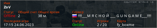 Играет на Counter Strike 1.6 сервере. Страна: РоссияПервый раз замечен 16:06 24.06.2023