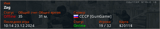 Играет на Counter Strike 1.6 сервере. Страна: РоссияПервый раз замечен 10:17 07.12.2023