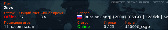 Играет на Counter Strike Global Offensive сервере. Страна: РоссияПервый раз замечен 20:01 08.03.2026