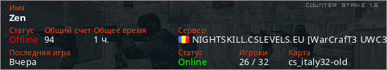 Последний раз был в сети Вчера Игрок с таким ником замечен на 26 серверах