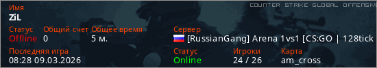 Играет на Counter Strike Global Offensive сервере. Страна: РоссияПервый раз замечен 07:59 09.03.2026