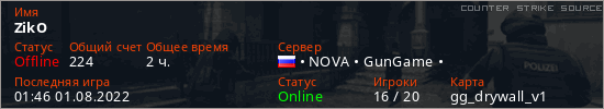 Играет на Counter Strike Source сервере. Страна: РоссияПервый раз замечен 01:01 31.07.2022