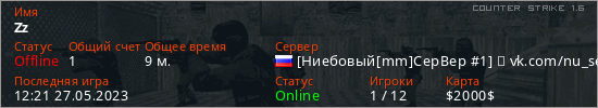 Играет на Counter Strike 1.6 сервере. Страна: РоссияПервый раз замечен 17:33 02.04.2023