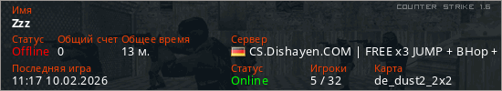 Играет на Counter Strike 1.6 сервере. Страна: ГерманияПервый раз замечен 12:57 08.02.2026