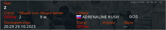 Играет на Counter Strike 1.6 сервере. Страна: РоссияПервый раз замечен 12:40 28.10.2025