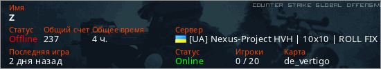 Играет на Counter Strike Global Offensive сервере. Страна: УкраинаПервый раз замечен 23:26 12.03.2026