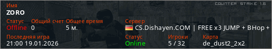 Играет на Counter Strike 1.6 сервере. Страна: ГерманияПервый раз замечен 20:58 19.01.2026