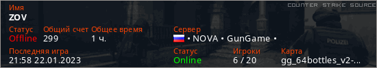 Играет на Counter Strike Source сервере. Страна: РоссияПервый раз замечен 17:37 10.12.2022