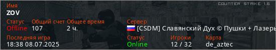 Играет на Counter Strike 1.6 сервере. Страна: РоссияПервый раз замечен 12:18 28.02.2024