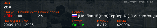 Последний раз был в сети 20:09 10.11.2025 Игрок с таким ником замечен на 42 серверах
