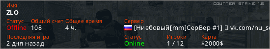 Играет на Counter Strike 1.6 сервере. Страна: РоссияПервый раз замечен 16:57 15.02.2021