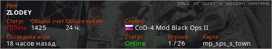 Играет на Call of Duty 4: Modern Warfare сервере. Страна: РоссияПервый раз замечен 18:49 12.11.2023
