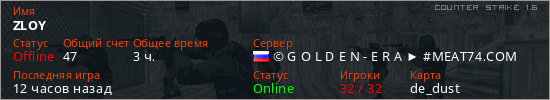 Играет на Counter Strike 1.6 сервере. Страна: РоссияПервый раз замечен 10:19 27.10.2023