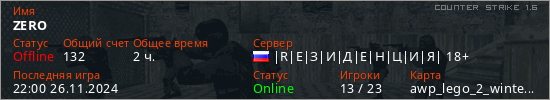 Играет на Counter Strike 1.6 сервере. Страна: РоссияПервый раз замечен 21:18 17.09.2021