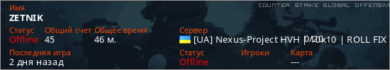 Играет на Counter Strike Global Offensive сервере. Страна: УкраинаПервый раз замечен 21:09 25.12.2025