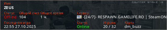 Играет на Counter Strike 1.6 сервере. Страна: СШАПервый раз замечен 18:23 30.01.2025